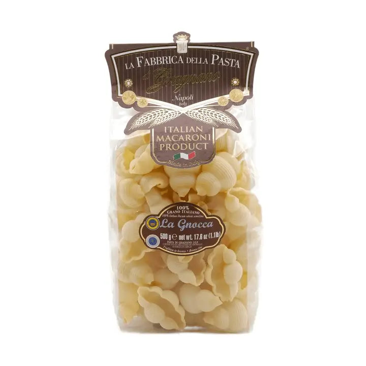 The Gnocca is a traditional Neapolitan pasta resembling a ridged shell that perfectly captures your sauces. Try it with a creamy pesto or meaty ragu sauce.