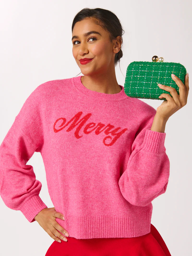The Mabel Minaudière is your new secret weapon for instant glam. Wrapped in textured tweed and topped with a gleaming gold and pearl clasp, this structured clutch adds just the right amount of sparkle to any outfit. It’s compact enough to keep things classy but roomy enough to stash your night-out essentials. With a detachable gold chain strap, you can swing it crossbody or carry it as a clutch—it’s a total show-stealer either way.